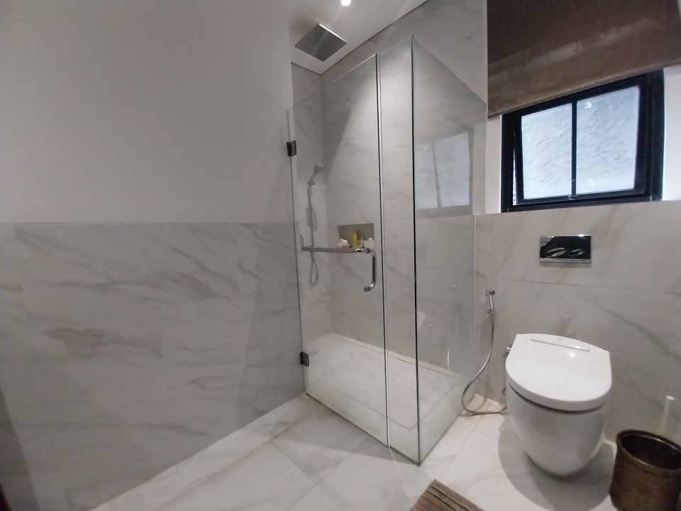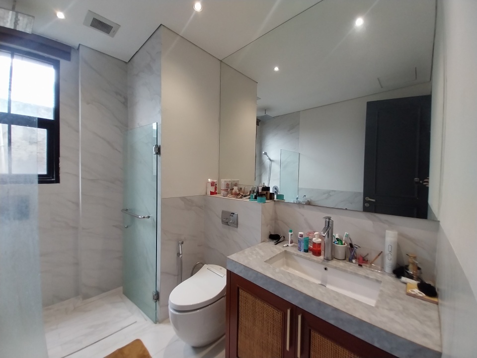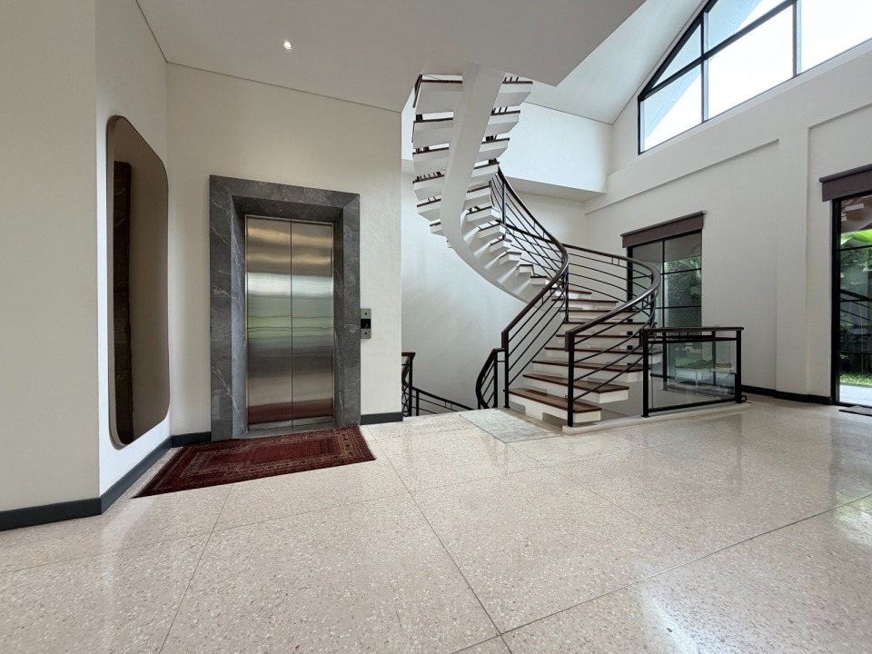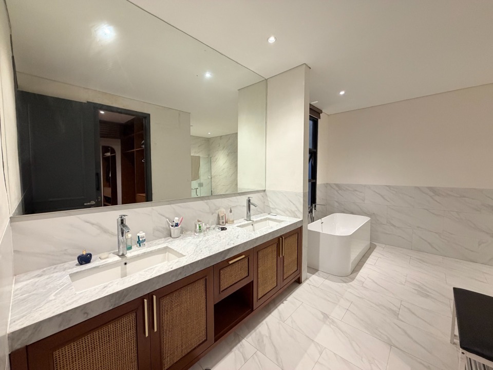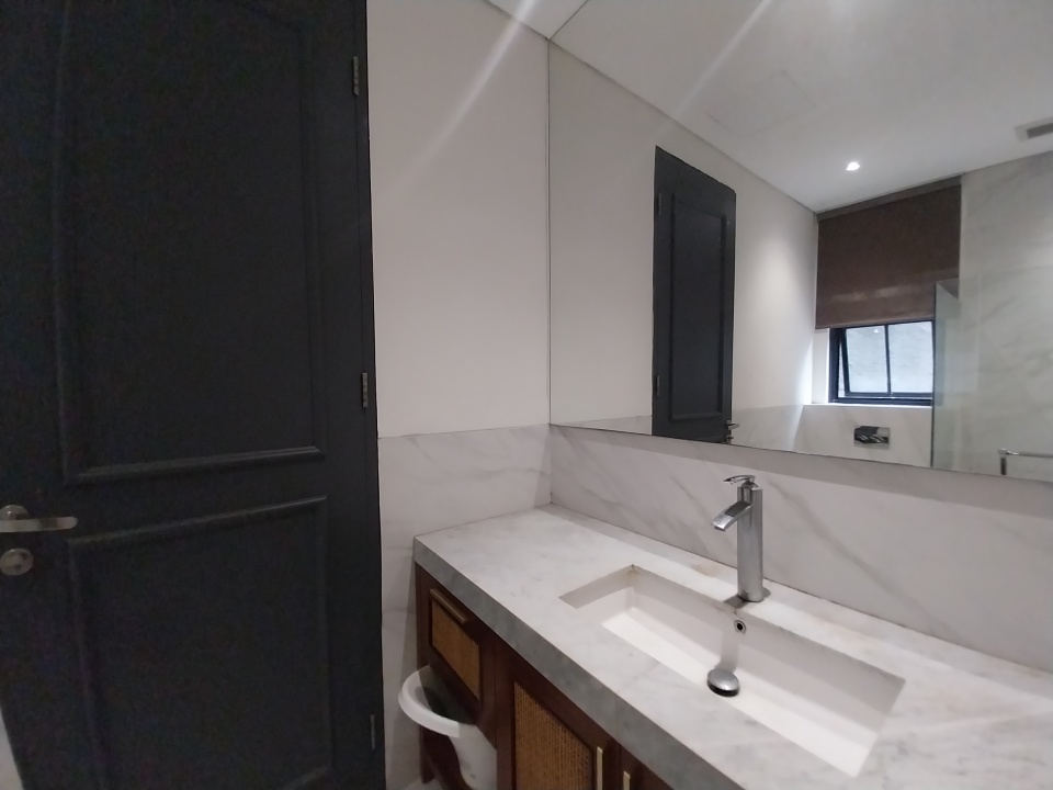 - Lantai marmer slab besar dan parquet di semua kamar tidur.