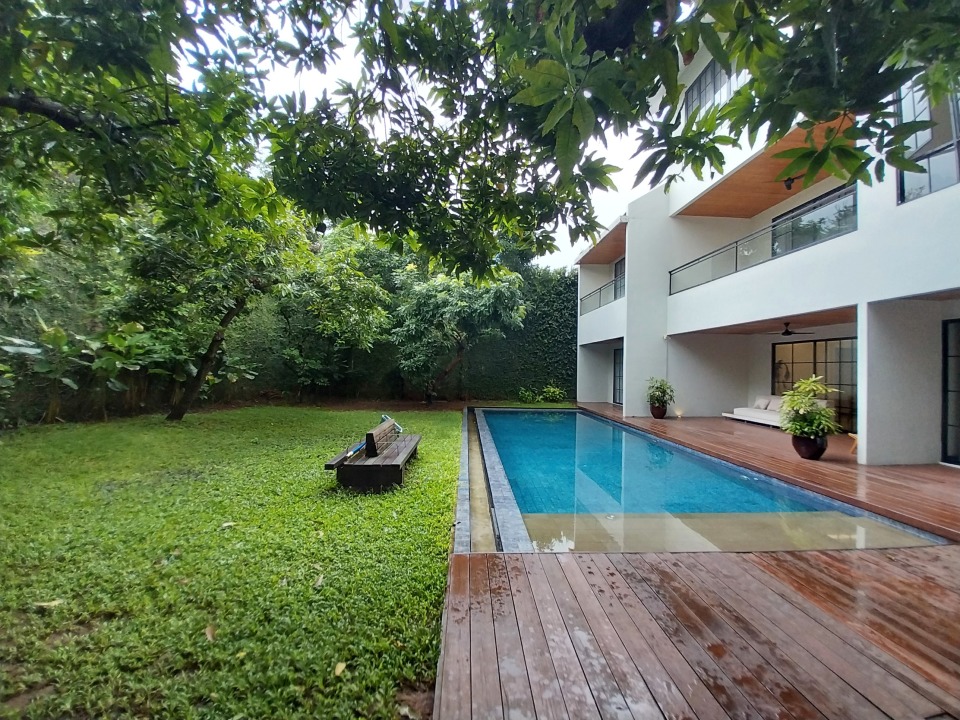 - Taman depan dan pekarangan belakang luas, teduh, dan rendang.
