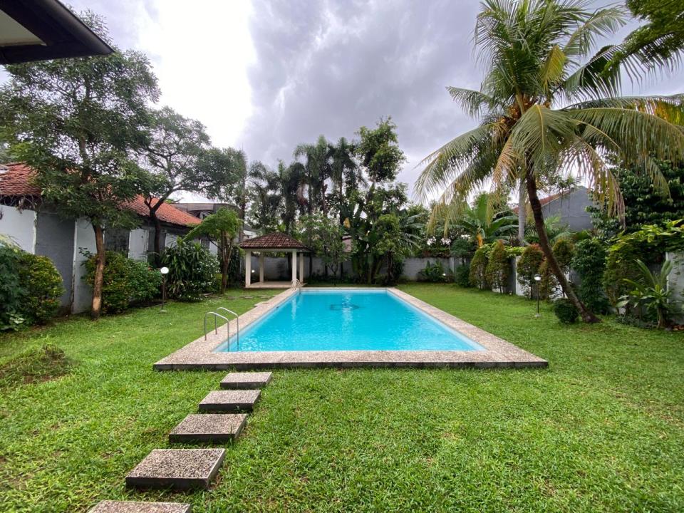 Taman belakang super luas lengkap dengan kolam renang berukuran semi olympic.
