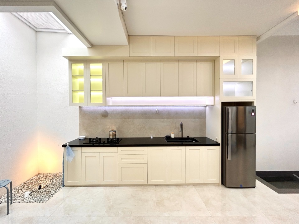 kitchen set, ac, lemari, bathtub, meja makan,