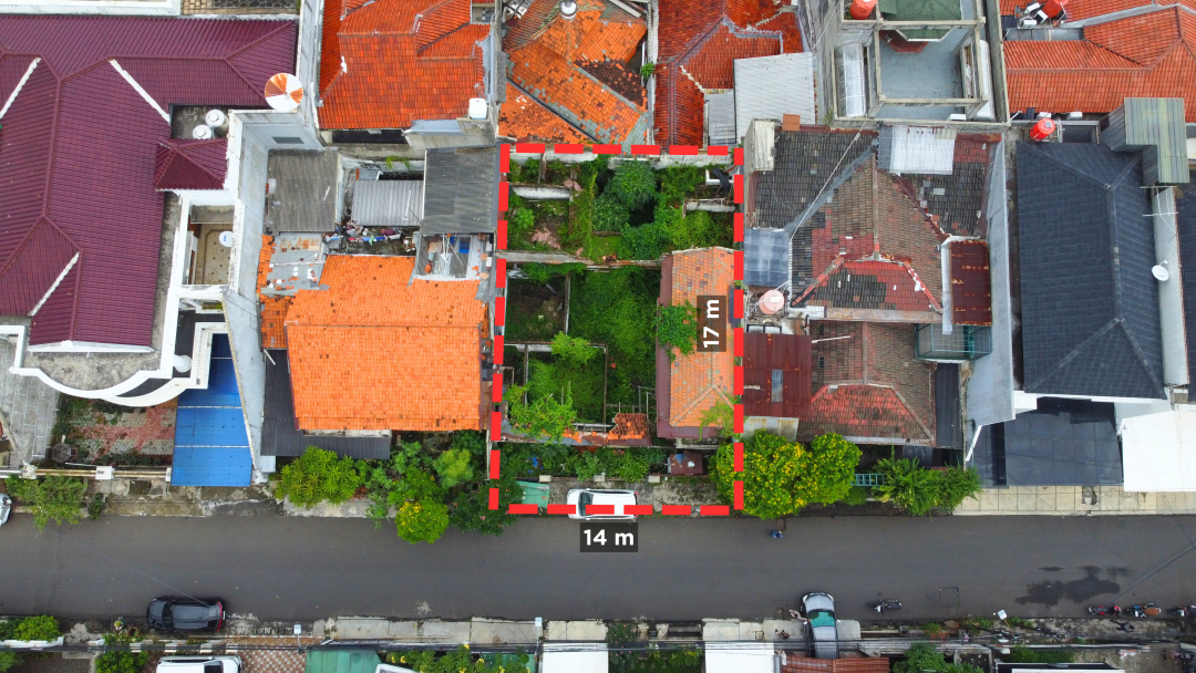 Dimensi Tanah Panjang 17 m X Lebar 14 m
