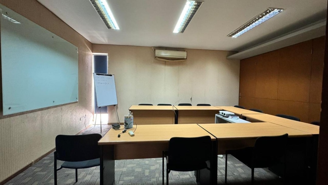 gedung 2 meeting room besar, 1 guest house terdiri dari 3 kamar tidur + 1 kamar mandi + kamar ART + ruang tamu, pantry)
